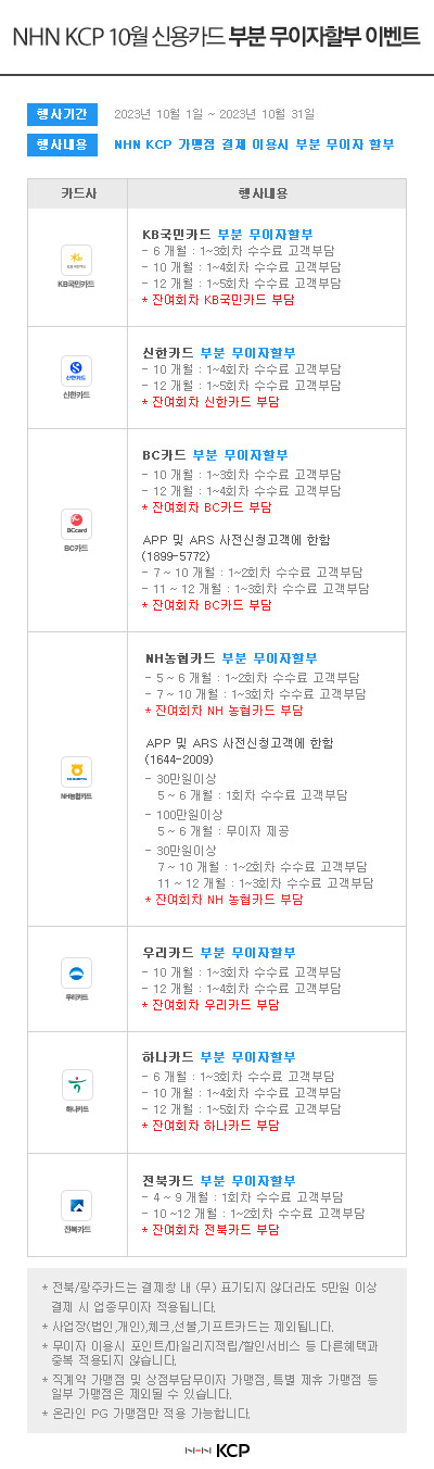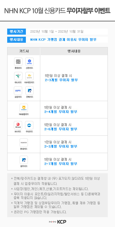 2023년 10월 신용카드 무이자할부 이벤트 공지사항입니다.